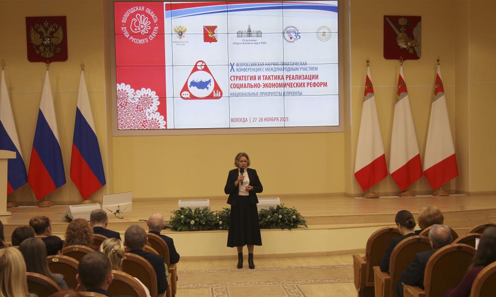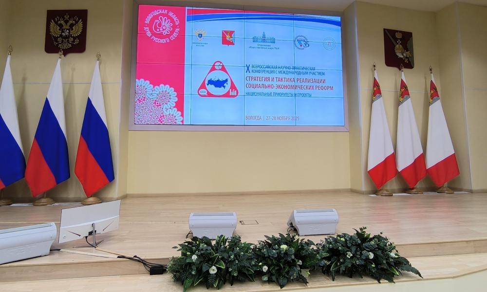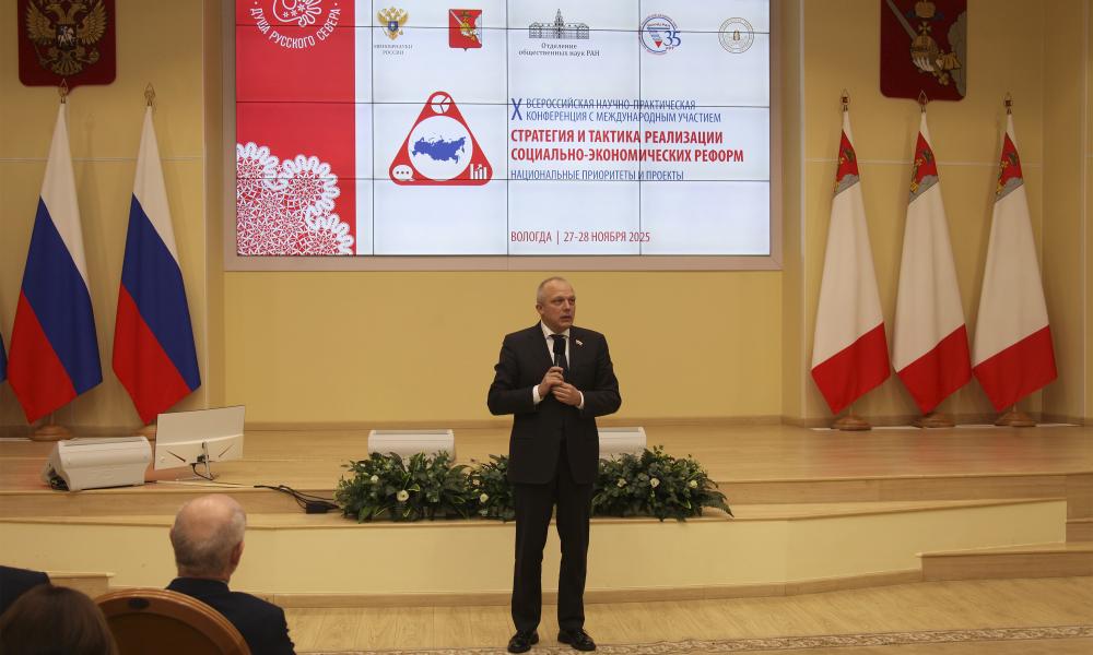 27 ноября 2025 г. в Вологде состоялось торжественное открытие X Всероссийской научно-практической конференции с международным участием «Стратегия и тактика социально-экономических реформ: национальные приоритеты и проекты», приуроченной к 35-летию Вологодского научного центра РАН. Мероприятие объединило ведущих ученых и экспертов России, иностранных специалистов, молодых исследователей, представителей федеральных органов законодательной и исполнительной власти Российской Федерации, администраций субъектов РФ, представителей образовательного сообщества России, деловых кругов, международных и российских общественных организаций. Коллективу Вологодского научного центра РАН была вручена Почетная грамота от Министерства науки и высшего образования Российской Федерации за значительные заслуги в сфере научной деятельности, добросовестный труд и в связи с 35-летием со дня основания. Ведущие ученые – д.э.н. Д.Б. Кувалин, к.социол.н. Н.Л. Мысливец, д.э.н. В.Ю. Музычук, д.э.н. Н.К. Хачатрян – представили доклады, посвященные проблемным вопросам политики, социологии, культуры, пространственного развития.