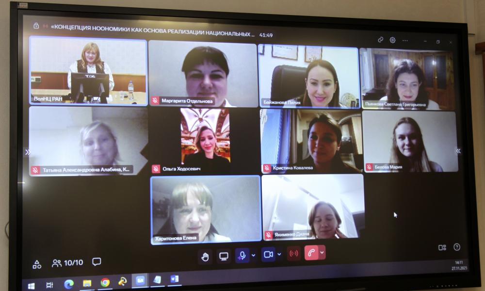 27 ноября 2025 года в Вологодском научном центре РАН в рамках X Всероссийской научно-практической конференции «Стратегия и тактика социально-экономических реформ» успешно прошла экспертная сессия «Концепция ноономики как основа реализации национальных приоритетов, проектов, платформ». Программа мероприятия включала представление докладов, посвященных проблемам теоретических основ нооэкономики и ее роли в трансформации общества, взаимосвязи ноономики с устойчивым развитием и реализацией национальных приоритетов развития страны, применения концепции ноономики в образовании, здравоохранении, культуре, сфере услуг и креативных индустриях. Проведение экспертной сессии не только подвело итог текущим исследованиям в области ноономики, но и заложило прочный мост между теорией и практикой.